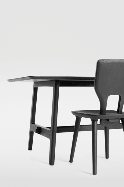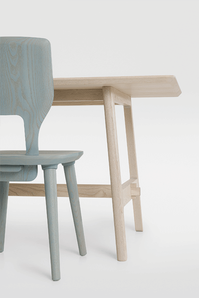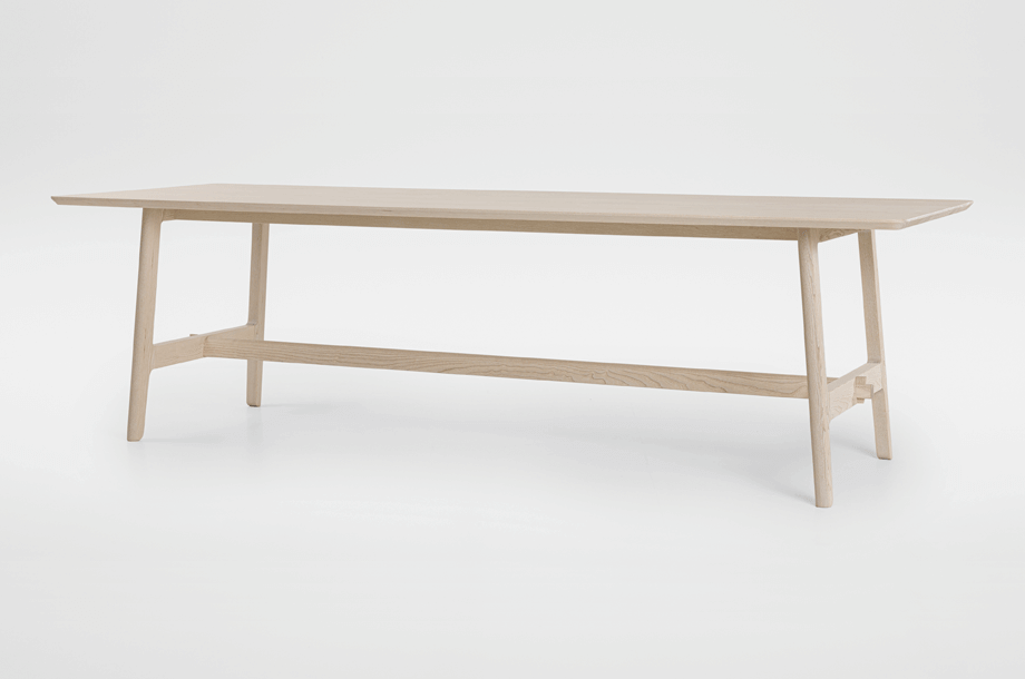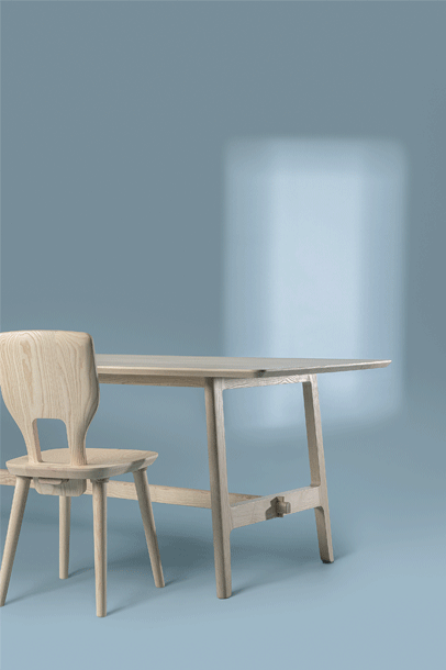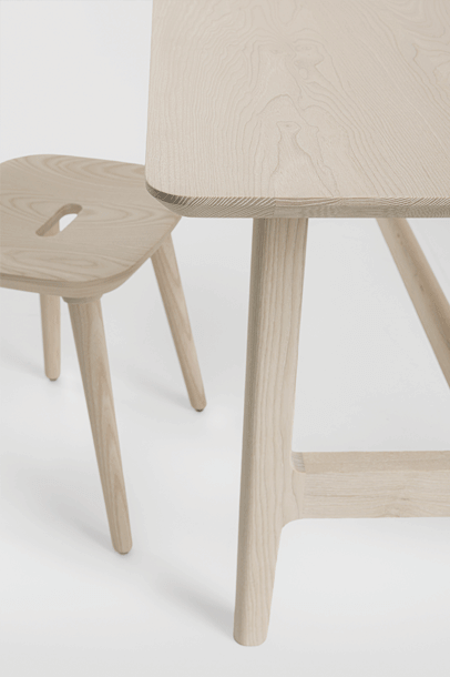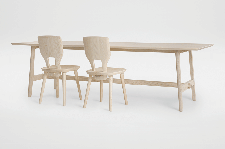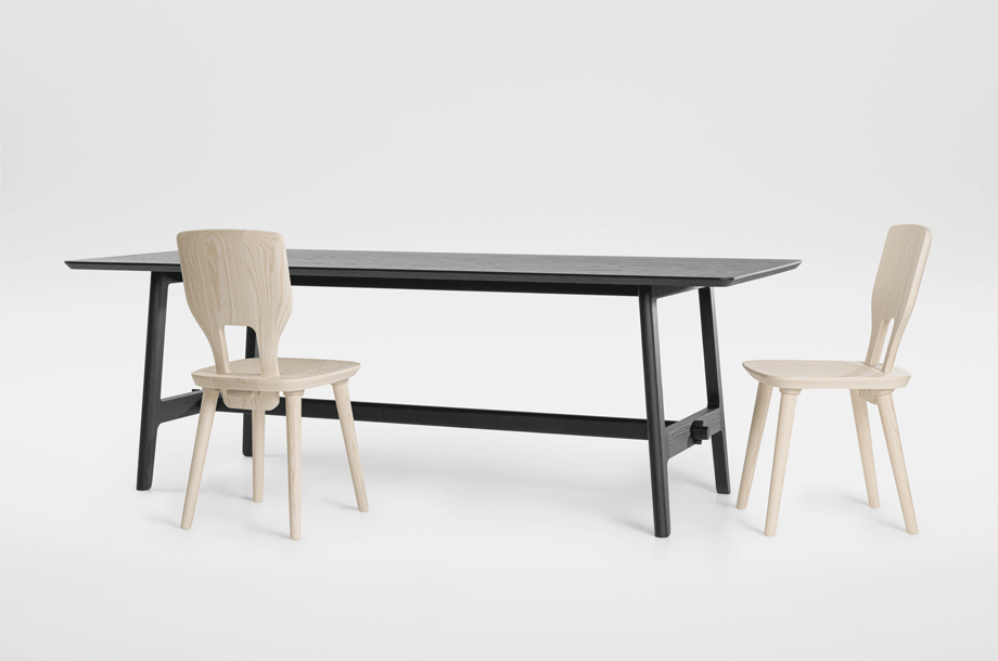 Design by Florian Hauswirth, 2024Die Grundkonstruktion des Tisches orientiert sich an den Steckverbindungen der Stabelle VNA CHAIR. Die Querzarge und die dazugehörige sichtbare Verkeilung sind typisch für den Alpenraum. Die seitlichen H-förmigen Konstruktionen sind mit der Fußzarge verbunden.